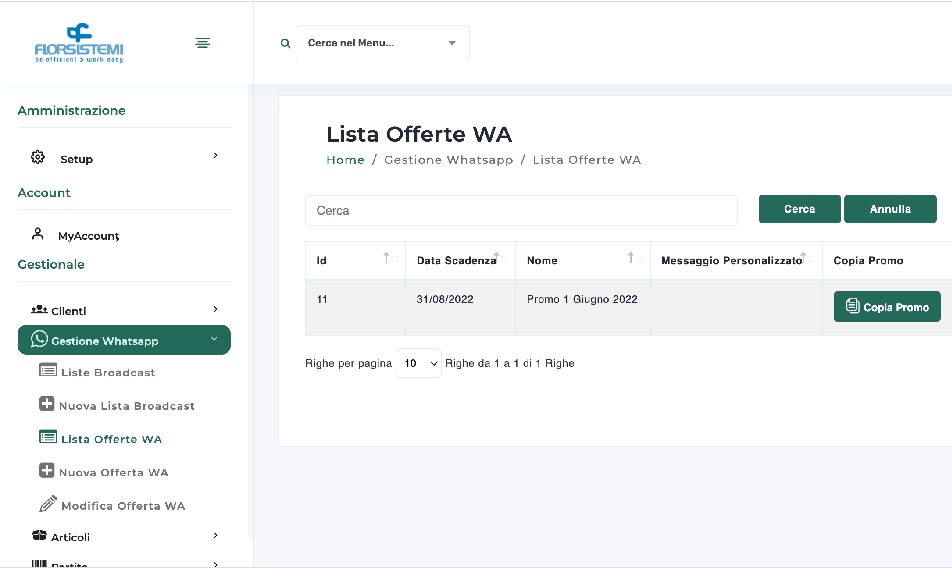 Demo per entrare nel pannello admin di demo della Promo Whatsapp Etiflor